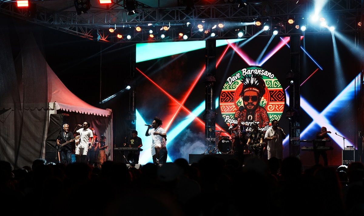 Sejak sore, atmosfer hangat sudah terasa. Fans berjubel di setiap sudut venue, saling bernyanyi, berswafoto, hingga ikut berjoget ringan sebelum panggung utama dimulai. Dentuman hip-hop Shine of Black membuka malam dengan “Jang Ganggu” yang langsung disambut koor ribuan penonton. Suara Jayapura seakan bergema lebih keras dari biasanya: lantang, penuh percaya diri, dan meriah.
