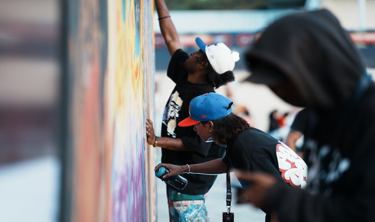 Tak hanya musik, Suara Tana Timur juga memberi ruang bagi seni rupa. Linggues, mural artist asal Serui, Yapen, menghadirkan karya visual dengan warna-warna cerah seperti hijau, kuning, oranye, merah dipadukan ornamen pesisir Papua serta simbol-simbol budaya lokal. Karyanya menegaskan bahwa seni rupa Papua setara dengan musik dalam menyuarakan identitas.