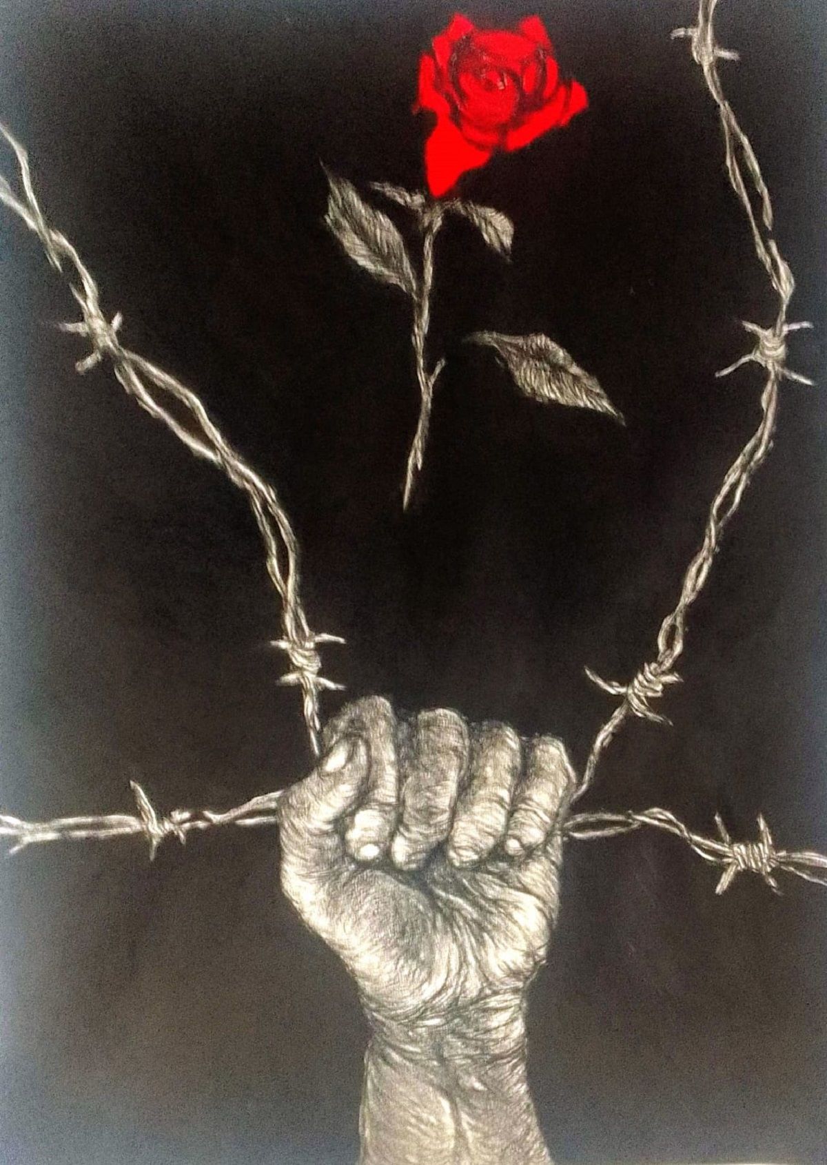 Objek-objek pada lukisan Bambang terserak sehingga gagal membentuk satuan utuh antara tangan dan bunga. Apa yang diharapkan mengenai bersatunya kenyataan dan harapan tidak sesuai lagi dengan ideal gagasan mengenai kemuliaan yang disimbolkan melalui bunga. Visualisasi objek lukisan ini menyarankan kegagalan dan ketidaksampaian dalam realitas. Yang ada, keberceraian harapan dengan kenyataan sehingga kanvas ini menghampiri audiens dengan perasaan patah, rapuh, sewaktu-waktu rontok.