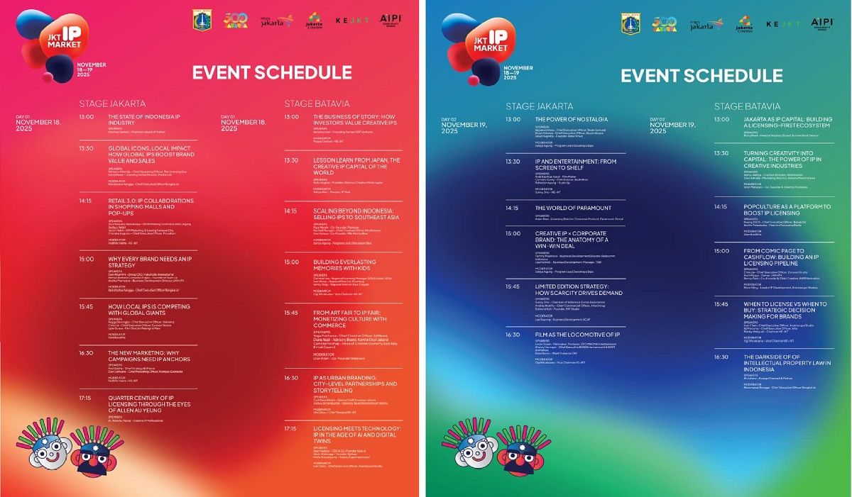 Indonesiasenang-, Industri kreatif Indonesia terus berkembang pesat dan memasuki fase yang membutuhkan dukungan ekosistem bisnis lebih terstruktur. Untuk menjawab kebutuhan tersebut, Komite Ekonomi Kreatif Jakarta bersama Asosiasi Kreatif IP Indonesia (AIPI) menghadirkan Jakarta IP Market (JIPM) 2025, yang akan berlangsung pada 18–19 November 2025 di Hotel Grand Sahid Jaya, Jakarta.
