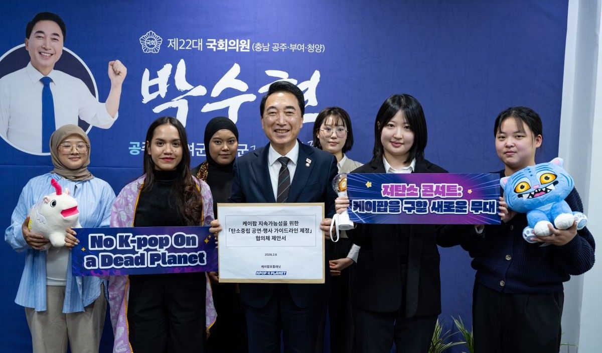 Pada tanggal 06 Februari 2026, perwakilan KPOP4PLANET menyerahkan proposal “Pedoman Carbon-Neutral Performance” kepada Anggota Parlemen Korea Selatan Park Soo-hyun di Majelis Nasional Seoul. Langkah ini menjadi lanjutan dari diskusi yang telah dimulai dalam Forum Standardisasi Konser K-Pop Rendah Karbon pada Desember tahun lalu.
