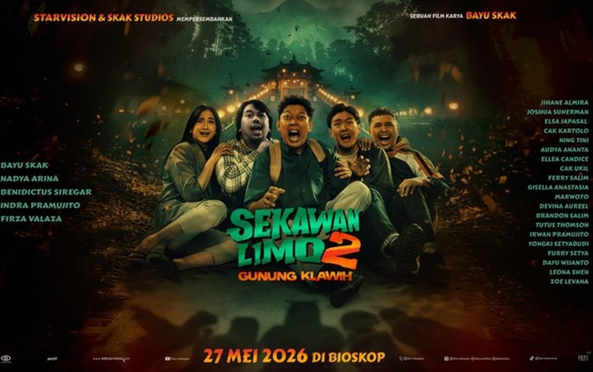 Indonesiasenang-, Industri film Indonesia kembali diramaikan oleh sekuel yang memadukan petualangan, horor, dan komedi dalam satu napas panjang. Sekawan Limo 2: Gunung Klawih, produksi Starvision bersama Skak Studios, dijadwalkan tayang mulai 27 Mei 2026 di bioskop seluruh Indonesia.
