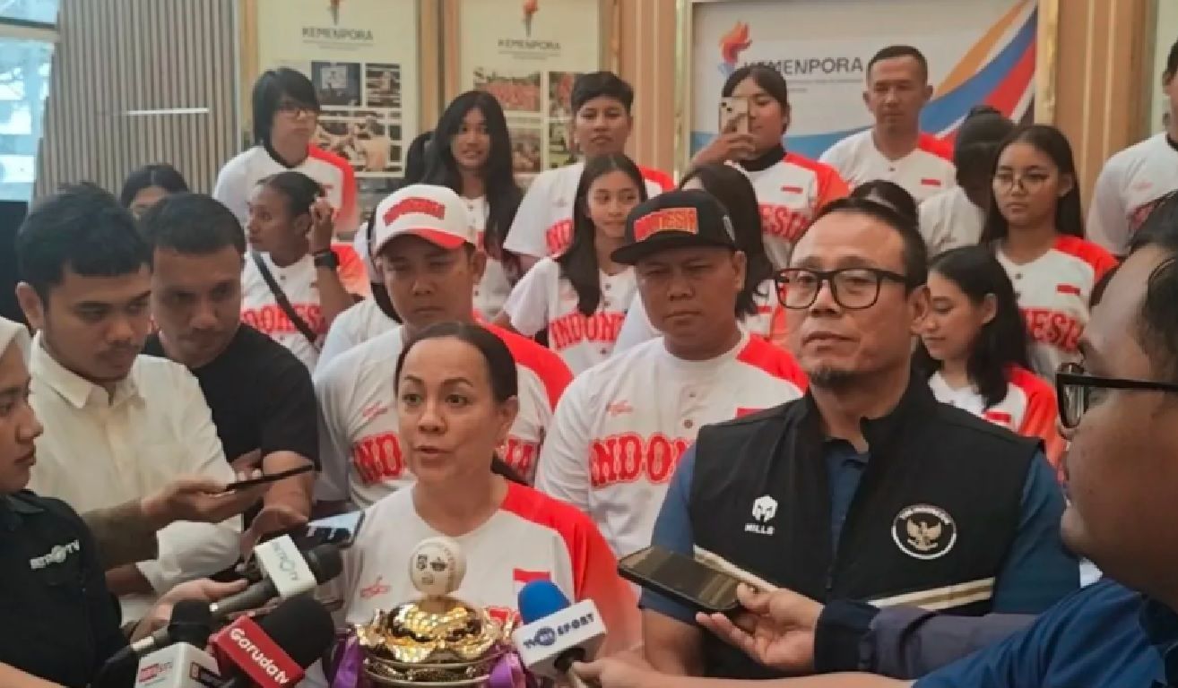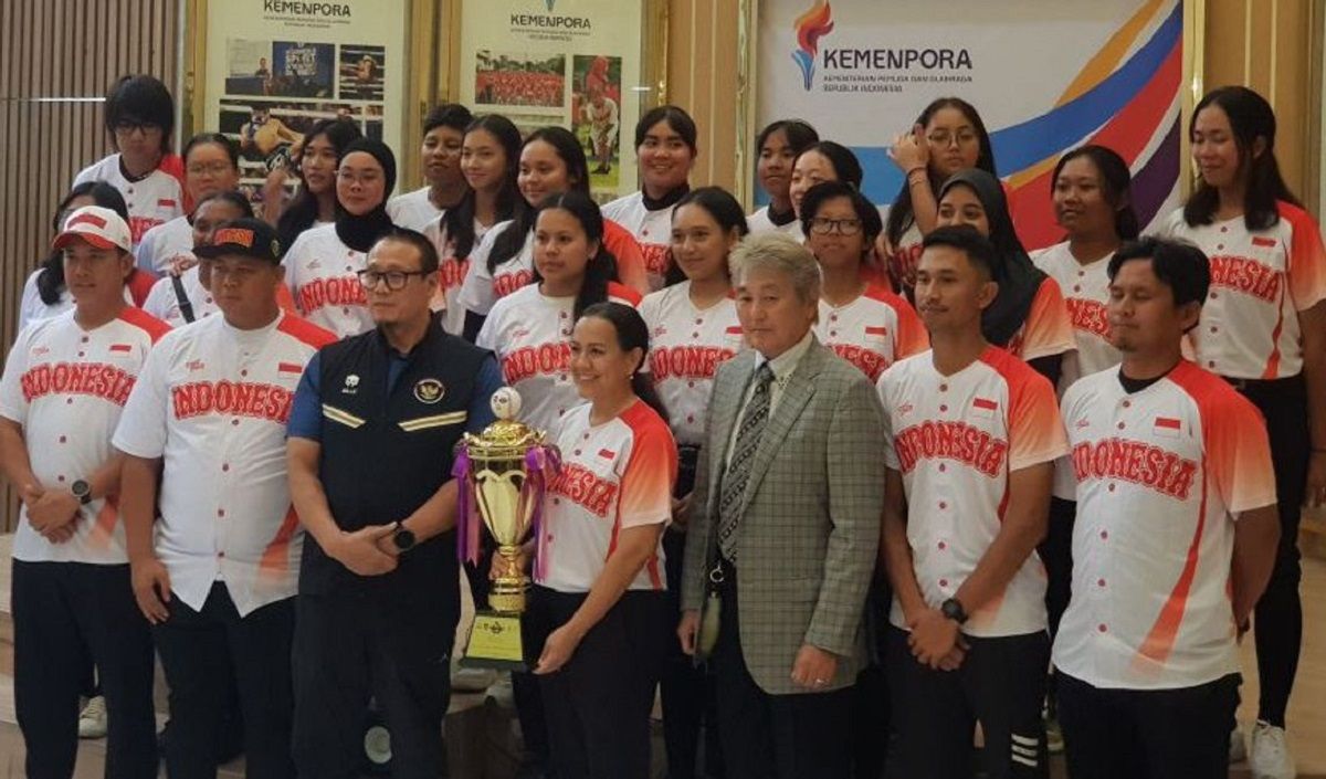 Pelepasan tim berlangsung di kantor Kementerian Pemuda dan Olahraga (Kemenpora), Jakarta, Kamis (23/10/2025). Deputi Bidang Peningkatan Prestasi Olahraga, Surono, hadir mewakili Menteri Pemuda dan Olahraga untuk memberikan dukungan dan semangat kepada para srikandi bisbol Tanah Air.